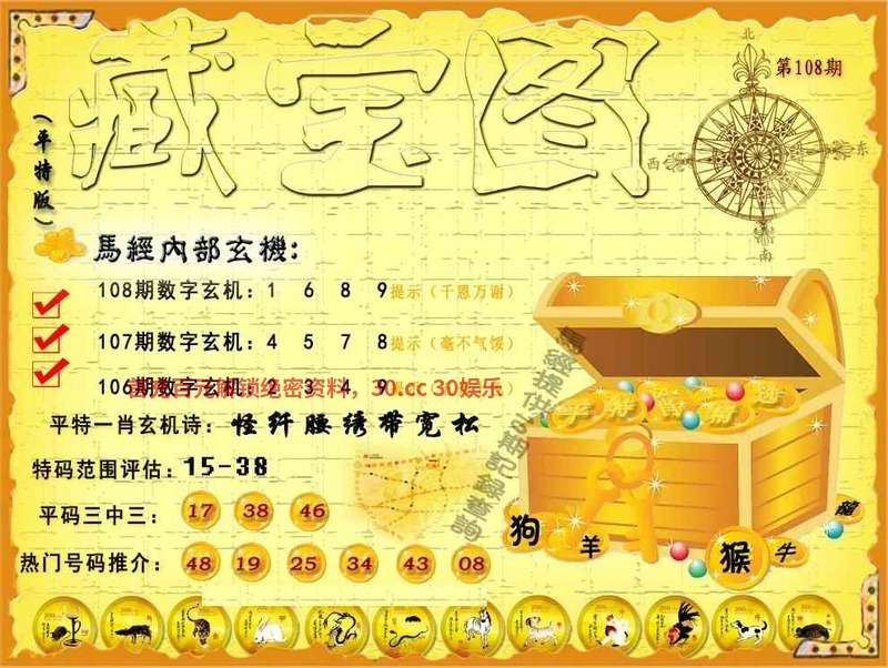 107期平特藏宝图玄机 【残冈过水作中条】 解:意思是水解出水肖鼠猪 特码范围评估:25-39